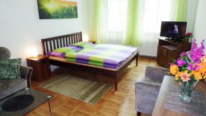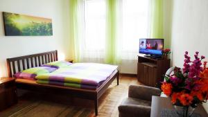 Umístění v bytovém domě (2. patro) s výhledem na město i do zahrady k dlouhodobému i krátkodobému pronájmu. Vhodné pro klienty Protonového Centra. Přístup do domu non-stop. Recepci zajišťuje správce domu. Parkování zdarma na ulici před domem. Možnost koupě jízdenek MHD. WiFi Zdarma