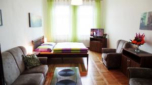 Vybavení: velký Luxusně vybavený moderní apartmán(pro 2 až 7 osob) s obývacím pokojem s dvojlůžkem, digitální TV, sedací soupravou. K apartmánu patři ještě samostatná ložnice s kapacitou pro 2 osoby a druha samostatná ložnice s kapacitou pro 3 osoby. Oddělené ložnice mají vlastni vstup z haly.